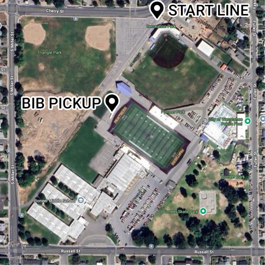 Meet your runner in the grassy area next to the PUD building at 5th and Wenatchee Avenue immediately after the race.