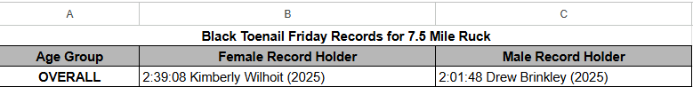 Those wishing to race in the ruck category must provide their own pack/vest and weight. Ruckers and their packs/vests will both be pre-weighed 20 minutes prior to the race at the starting line.