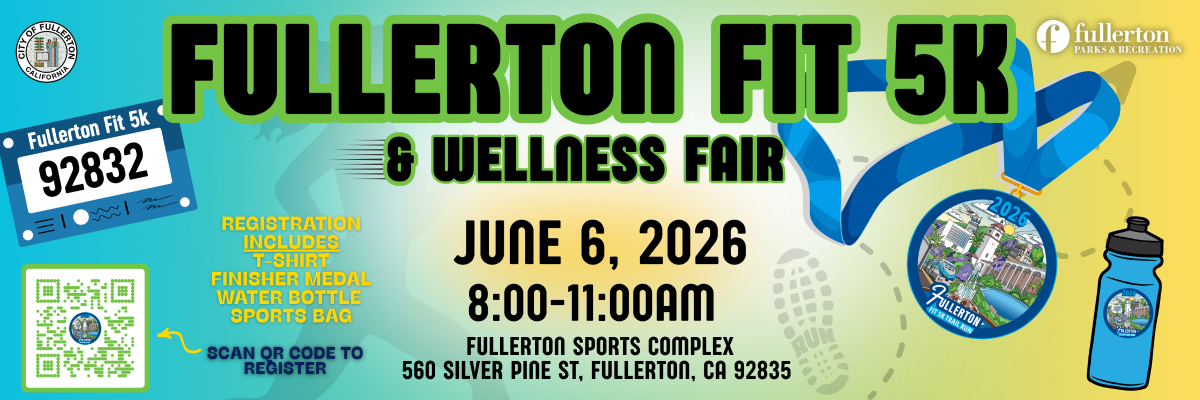Join us for the City of Fullerton’s inaugural 5K Trail Run, a community celebration of fitness, wellness, and fun! Lace up your running shoes and experience a scenic dirt trail course that winds through the natural beauty of the Brea Dam area and alongside the Fullerton Tennis Center & Golf Course. This trail run is not stroller friendly and encouraged for children ages 10 and up.