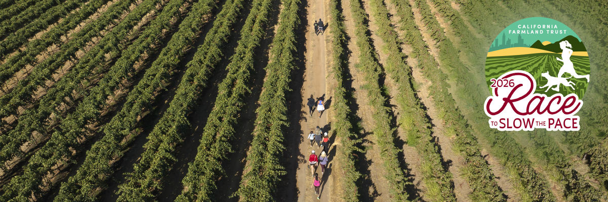 The sixth annual Race to Slow the Pace 5K & 10K, presented in partnership with the John and Jeani Ferrari Family Foundation, to be held at Bokisch Vineyards in Lodi, CA is a trail run to connect people with nature, the environment and family farms that feed them, while furthering California Farmland Trust’s mission. Our goal is to foster a connection to the land and why we must slow the pace of development and protect farmland. Runners will weave their way through the scenic vineyard at Bokisch while taking in the vines, the habitat, and the value of open space that farmland provides. Your participation of the run connects you to the local community and demonstrates your support of agriculture. This is a family, stroller and pet-friendly event designed to get you out into the beauty of Lodi and a working vineyard.