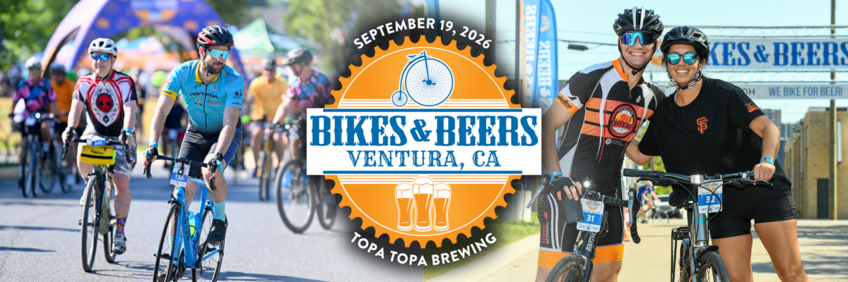 Register for California's Annual Bikes & Beers Ventura - Bike Ride & Beer Festival 2026, the premier cycling event series departing from TOPA TOPA BREWING in Ventura, CA! Choose your challenge from a 15, 30, or 45-mile ride through the beautiful areas of trail and less-traveled roads of Ventura. Complete with morning fuel stations, fully marked routes, rest stops, and SAG support for all riding levels. Finish back at TOPA TOPA for an unforgettable post-ride beer festival atmosphere, where you'll enjoy two complimentary craft beers in an official B&B pint glass, live music, food trucks, games, sponsor giveaways, and a massive charity raffle with over $3,000 in prizes, all while benefiting local cycling charities. Have fun and give back!