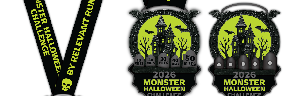 Relevant Running is always looking to help keep you motivated and inspired. Join us throughout October 2026 for the Monster Challenges Halloween 50 Mile Challenge. A virtual challenge for runners and walkers of all ages anywhere at any time. With this challenge, you can earn the awesome Monster Challenges Wicked Halloween medal AND Halloween themed mini-medals AND pins/buttons (if you are willing to put in the miles).