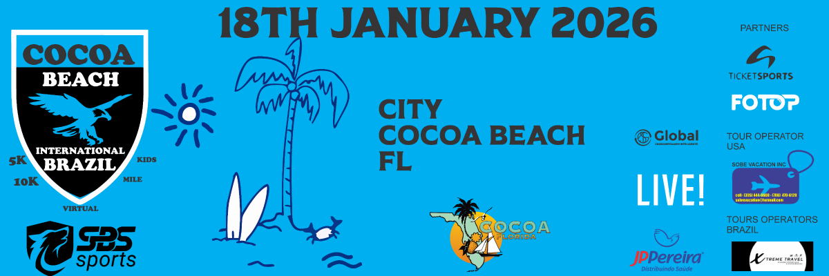 1.1. The COCOA BEACH BRAZIL INTERNATIONAL Pedestrian Race, hereinafter referred to as the EVENT, will be held on January 18, 2026, in the city of Cocoa Beach in Florida), under any weather condition, with the participation all, duly registered, hereinafter referred to as ATHLETES.
