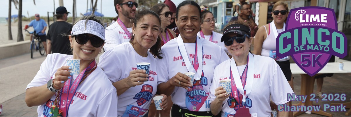 Every participant will receive an official event shirt, a colorful finisher medal, and a stuffed goodie bag as part of their race experience. After crossing the finish line, runners can celebrate with refreshing margaritas and beer, along with the best LIME food, known for its fresh, flavorful dishes. Whether you're coming for the run, the beach vibes, or the delicious post-race party, the Cinco de Mayo 5K promises an unforgettable morning of fun in the sun. Proceeds from the 5K will go to 4KIDS of South Florida.