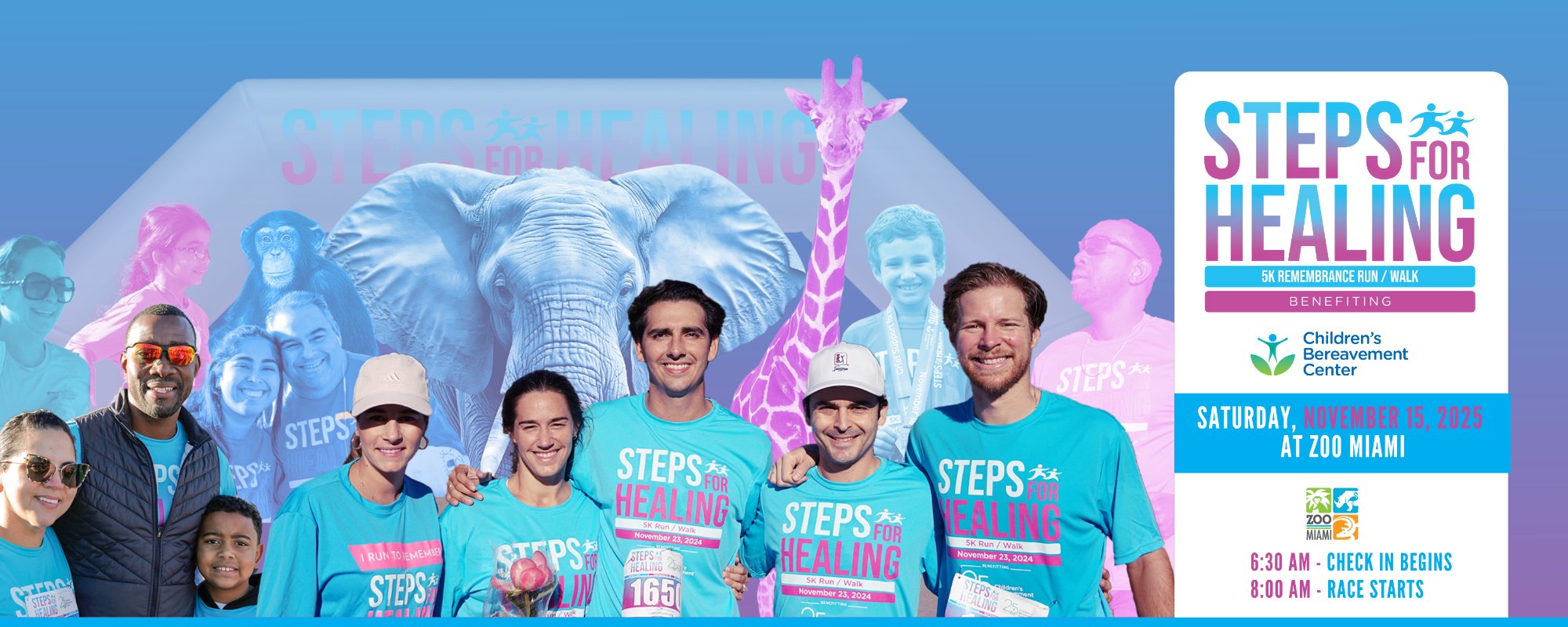 Join us at Zoo Miami on Saturday, November 15, 2025, for Steps for Healing, a 5K Run/Walk where every step honors the memory of a loved one. Together, we’ll celebrate their lives, lift one another in hope, and raise vital funds for the Children’s Bereavement Center (CBC).