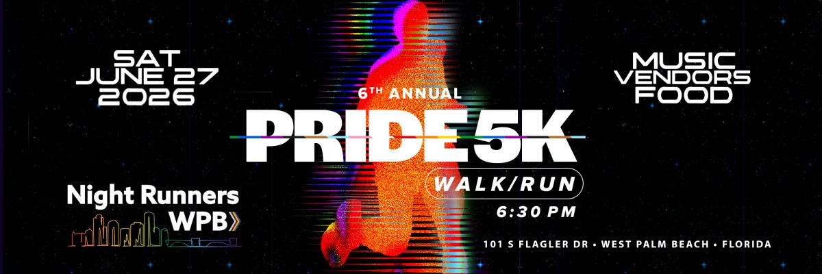 The 5th Annual Pride 5K Run/Walk Presented by Night Runners WPB will be an LGBTQ+ celebration that encompasses family fun and community unity through running and walking. The race will take place on Saturday, June 21, 2025 at 6:30 PM in West Palm Beach, Florida. All registered participants will receive a limited edition shirt^ and unique event finisher medal!