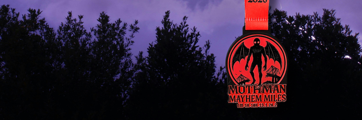 The Mothman Mayhem Miles Virtual Race takes you deep into the mystery and lore of one of America’s most chilling cryptids — the shadowy, red-eyed Mothman of Point Pleasant.