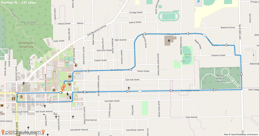 The Panther 5k is a fully paved course showing off the downtown area, campus, and community neighborhoods. Check out the map below and click the link for a more detailed view.