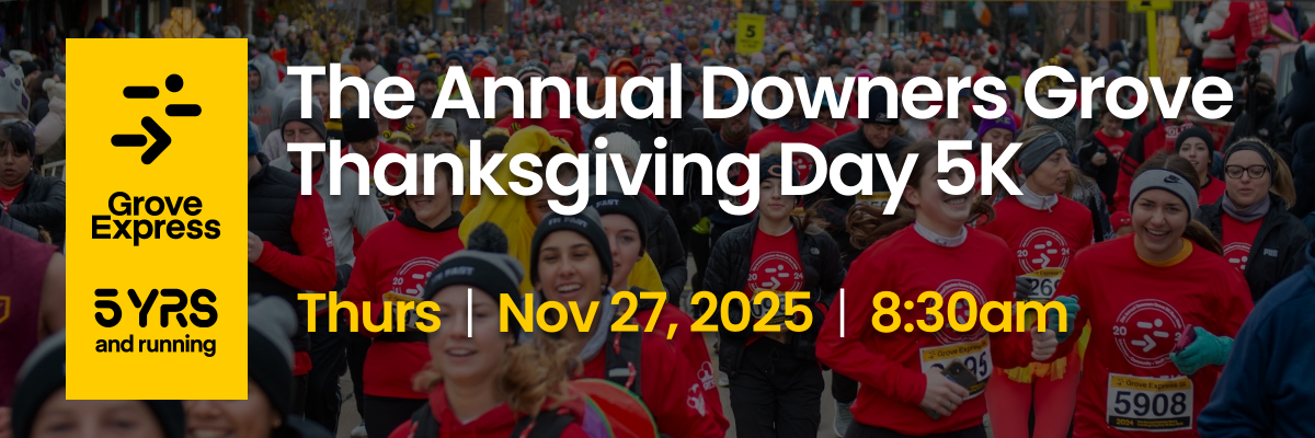 Get into the holiday spirit by joining the 2025 Grove Express 5K Run/Walk, hosted by The Grove Express Foundation. Keeping up with the annual tradition, the scenic run through downtown Downers Grove will take place on Thanksgiving Day, November 27, 2025.