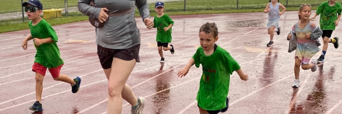2 Year olds will start promptly at 6:00 PM, followed by 3, 4, 5, 6, 7, 8, 9-11, 12+ open mile run. Timing clocks will be onsite to view finish times.