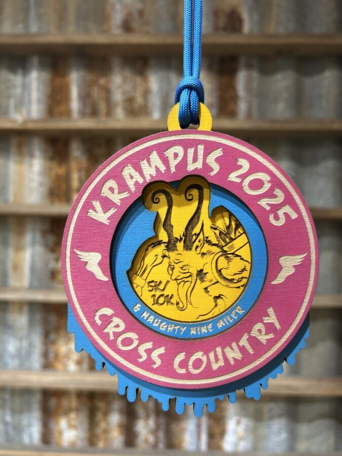 The design for 2025's race woodallion has not been finalized. But, here's a peek at last year's KRAMPTASTIC DESIGN!