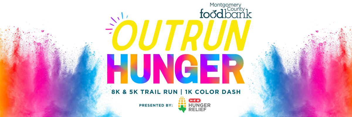Join the fight against hunger by participating in Montgomery County Food Bank's annual Outrun Hunger event, featuring a 8K & 5K Trail Run | 1K Color Dash : Presented By H-E-B. The event's proceeds benefit Montgomery County Food Bank's programs for children, seniors, and families facing hunger in Montgomery County. This community-wide event offers summer fun for all ages. All event long at the Party Pavilion, you'll enjoy music, food trucks, photo ops, a kids zone, and more. We encourage all participants to set up a fundraiser to make your impact go even further. Every $1 raised provides up to 4 meals. Let's make a colorful dash into summer!