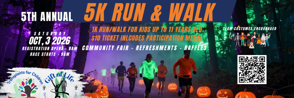 Get ready to lace up your sneakers — and your costumes — for a race that gives more than just medals. Transplants for Children (TFC) is proud to host the 4th Annual Gift of Life 5K Run/Walk, a family-friendly event dedicated to raising awareness and support for pediatric transplant recipients and their families.
