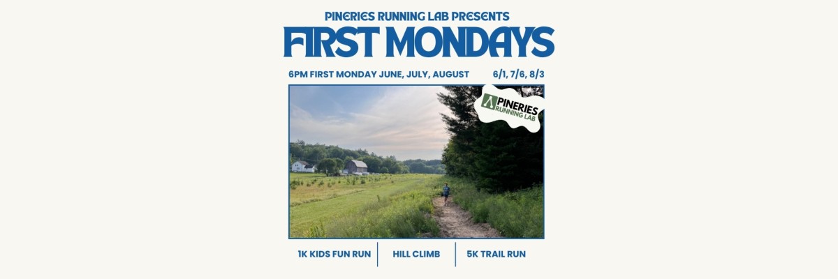 The First Mondays 5k Trail Race Series at the Iola Winter Sports Club is back for its second year and we couldn't be more excited! We are incredibly excited to announce that the Pineries Running Lab has come on board as the presenting sponsor this year and will be at each race answering any running related PT questions! Please stop by and talk to their incredible team.