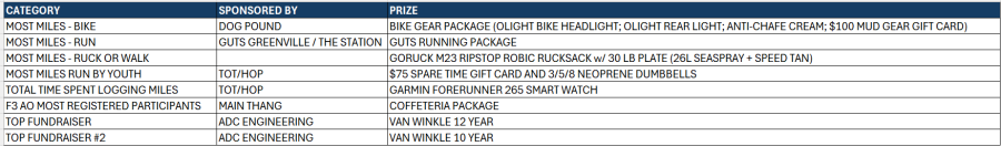 Only One Rule: You can only win one activity category. We’d like to spread the wealth a bit.