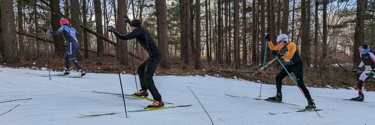 If on man-made snow (likely): There are two distances: 12km (6 laps around the 2.5km trail) and 5km (2 laps around the 2.5km trail). There will be a skate lane and a single classic track. Skiers choose to skate or classic ski the course. The trail is relatively flat, with two small hills. Michigan Cup racers: The 12km distance is a senior points race; the 5km distance awards junior points.