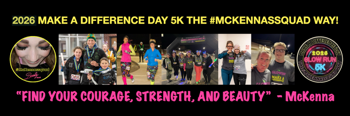 McKenna's passion for make up lives on with this legacy and we need your help to "Make a Difference" by signing up, participating, posting, sharing, and helping #McKennassquad grow to reach more children in hospitals. We went virtual for 2021 but like last year, we are in person with wonderful opportunities to run/walk a 5K or run/walk a "McKenna Mile". All proceeds go directly to the #McKennassquad Beauty Bar! Make a Difference today and join us March 7, 2026!