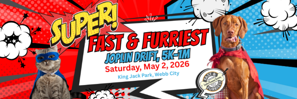 Join the Joplin Humane Society on Saturday, May 2, 2026, for the 6th Annual Fast & the Furriest, Joplin Drift 5K/1M, happening at the beautiful King Jack Park in Webb City.