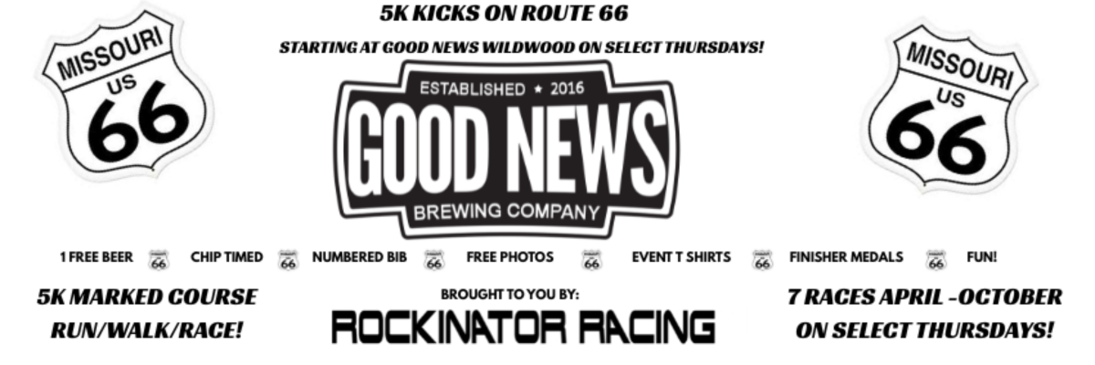 Welcome to The Good News Brewing 5K Kicks on Route 66! Brought to you by Rockinator Racing.