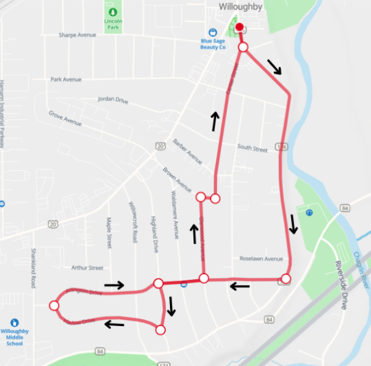 Roads will be partially closed beginning at 10:30am on Saturday, December 6th and will reopen once the last runner crosses the finish line. Willoughby Police will handle high traffic intersections. Erie Street Miracles volunteers will be on-hand to keep traffic clear on side streets and lesser intersections. There may be times when you will share the road but that will be at an absolute minimum. The well marked route is a relatively flat 3.1 miles through the gorgeous streets of Downtown Willoughby.