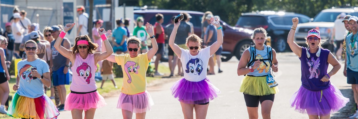 To make it to the post-race party in one day, the team must maintain a pace of 11:00 minutes per mile or less. This doesn’t mean everyone on the team has to run at this pace, but it does mean that if you have slower team members, you will need faster ones to keep your team on track.