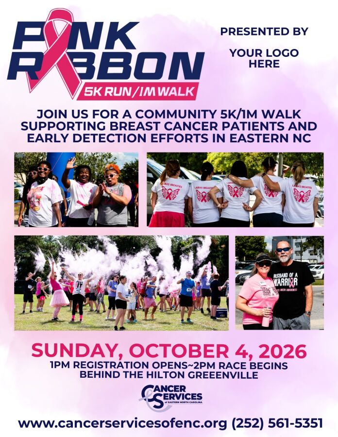 The 11th annual Pink Ribbon Run (formerly Run for the Ribbons) 5K run and 1-mile walk raises funds for local people battling breast cancer and their families.