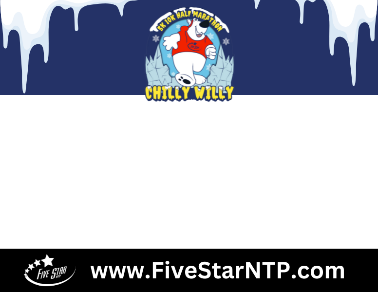 Share your distance, a selfie, or a picture along your race route, and use the hashtag #ChillyWilly5K #ChillyWilly10K #ChillyWillyHalf #fivestarrunning