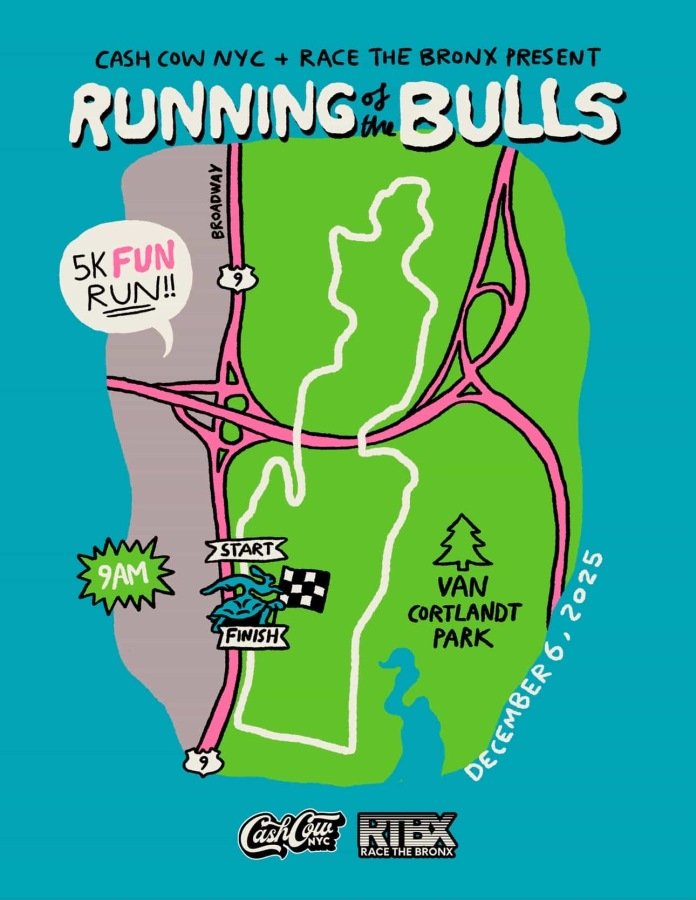 Race The Bronx and Cash Cow NYC present the thrilling "Running of the Bulls 5k" at Van Cortlandt Park on December 6! Lace up your shoes and join us for an invigorating run through the park's scenic trails, experiencing the perfect blend of urban charm and natural beauty. Whether you're a seasoned runner or new to racing, this event promises a memorable day filled with fitness, community, and fun. Don't miss the opportunity to be a part of this exciting 5k race on December 6 at Van Cortlandt Park at 9am!