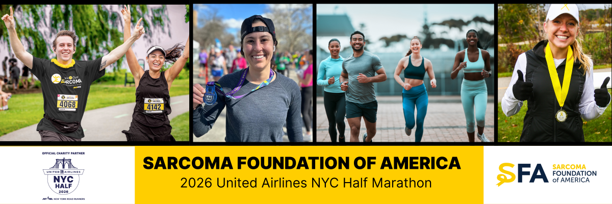 The Sarcoma Foundation of America (SFA) is thrilled to be a charity partner of the 2026 United Airlines NYC Half Marathon. Experience the bright lights of New York City as the United Airlines NYC Half returns on Sunday, March 15, 2026.  The 13.1-mile journey begins in Brooklyn, making its way over the historic Manhattan Bridge and FDR Drive. Runners also get the unique opportunity to run through Times Square (only 1 of 2 times that it is closed each year!) and finishing in Central Park.