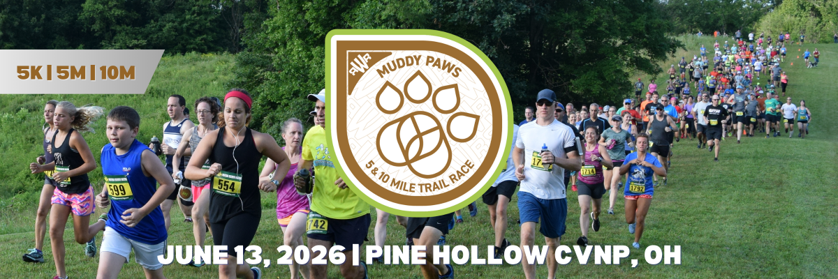 NEW 5k for 2026! Get ready for an exhilarating adventure at the Muddy Paws 5k, 5 Mile & 10 Mile trail race, set among the trails of the picturesque Kendall Lake area of the Cuyahoga Valley National Park. Lace up your shoes and prepare to tackle the NEW 5k, complete one loop for the 5 miler, or challenge yourself with two loops for the 10 miler. Whether you walk or run, this race has an option perfectly suited to your pace.