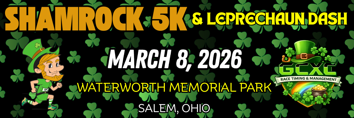 GCXC Racing - Youngstown presents the inaugural Shamrock 5K & Kids Fun Run taking place on Sunday, March 8th, 2026, at Waterworth Memorial Park, in Salem, Ohio.