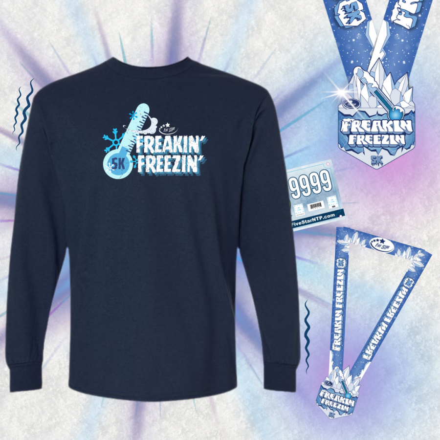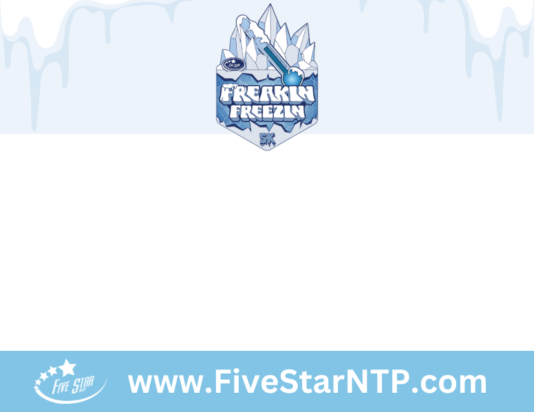 Share your distance, a selfie, or a picture along your race route and use the hashtag #FreakinFreezin5K #fivestarntp #fivestarrunning