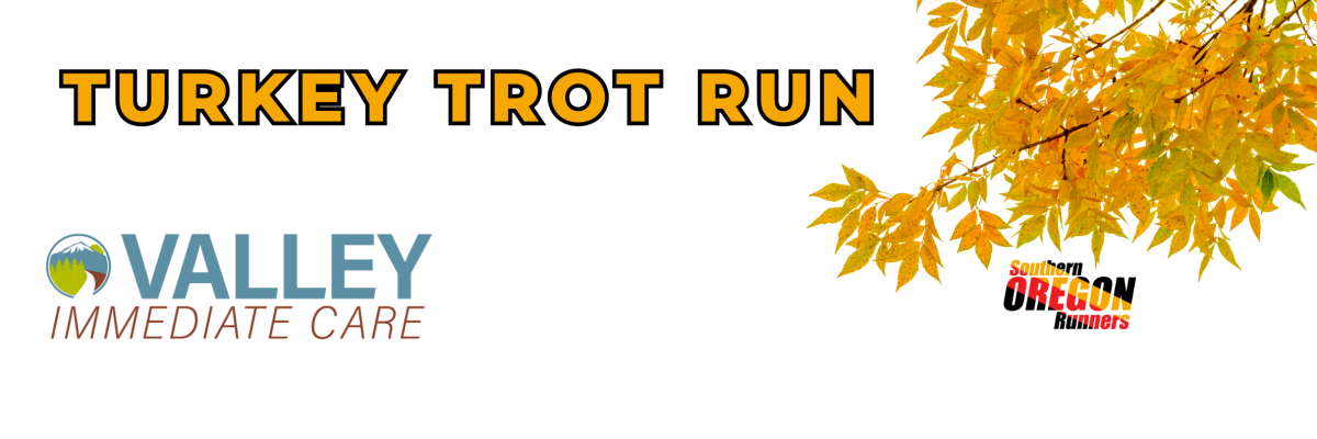 Come to Talent, Oregon for our Thanksgiving run! We will be hosting a food drive for the SOU food bank and a portion of the proceeds will go to SOR Student Runners Programs which include Shoes for Kids (provides shoes to Jr. High and High School athletes who would like to participate in Cross Country and Track but cannot afford proper running shoes), KidsRunFree (provides free entry to all SOR races for kids 18 & under), and XC Project (provides timing support for schools during cross country season).