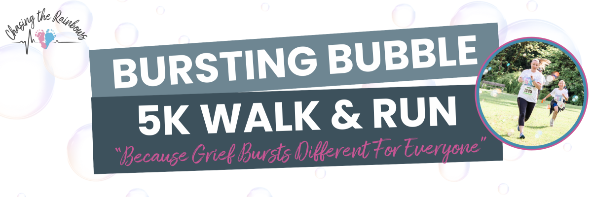 Join Chasing the Rainbows this Bereaved Mother’s Day weekend for the Busting Bubble 5K Walk & Run, a heartfelt event dedicated to healing, remembrance, and community. Whether you join us in person at one of our many locations or participate virtually, your involvement helps raise awareness and provides vital support for families grieving infertility, pregnancy loss, stillbirth, or infant loss.