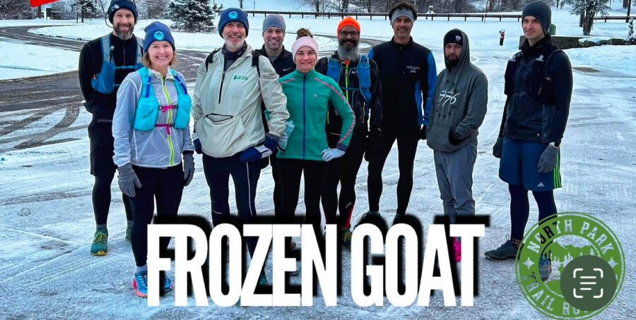 20-25 miles, continuous, self supported and unmarked run with Tim Flaherty. Please note that the continuous route will follow a different course, will begin at 7:15, will not return to ice rink until the end, and will be close to a 13 minute pace or faster. All finishers receive a Frozen Goat certificate.