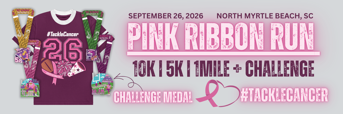 Coastal Race Productions is excited to put our professional and exciting spin on such a worthy cause! Come Run/Walk with us and together let's make a difference in the fight against Breast Cancer. Donating more to local breast cancer non-profits than any other race in the Grand Strand area - we appreciate your genorosity.