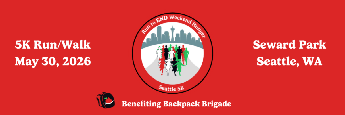 Join us at the Run to End Weekend Hunger 5K to support Backpack Brigade, the largest weekend-hunger relief organization for schoolchildren in Washington state. Backpack Brigade provides food for children in our communities who rely on their schools for breakfast and lunch and often have little to no food on the weekends. Your participation helps further Backpack Brigade’s mission to END weekend hunger for more than 5,000 students a week in 102 schools (and counting) in King County.