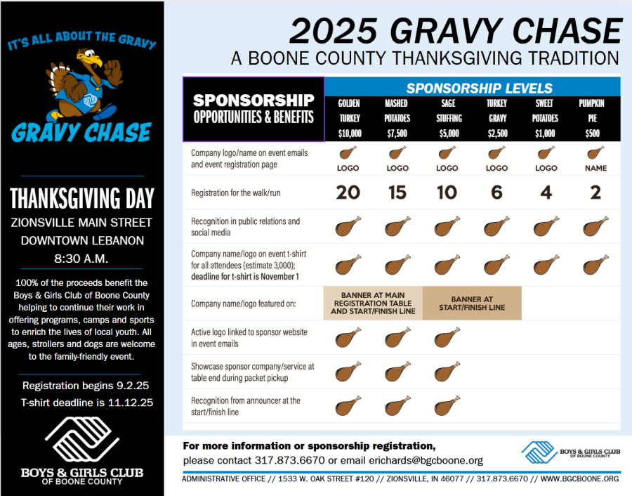 Please read through our sponsorship Benefits and Opportunities page linked here. Contact Lauren Matlock at lmatlock@bgcboone.org with any questions.